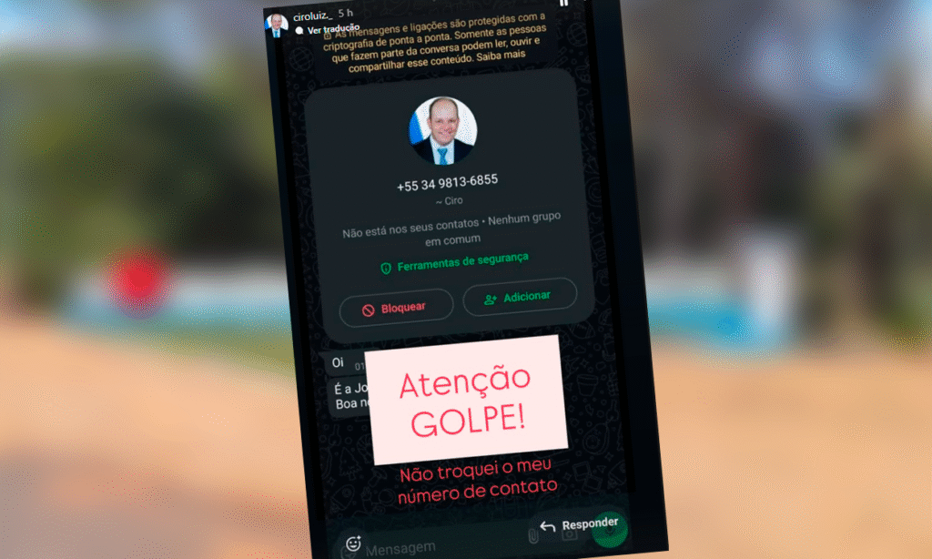 “Atenção, é golpe. Não troquei o meu número de contato”, escreveu, pedindo que todos ignorem qualquer mensagem recebida de números desconhecidos se passando por ele.