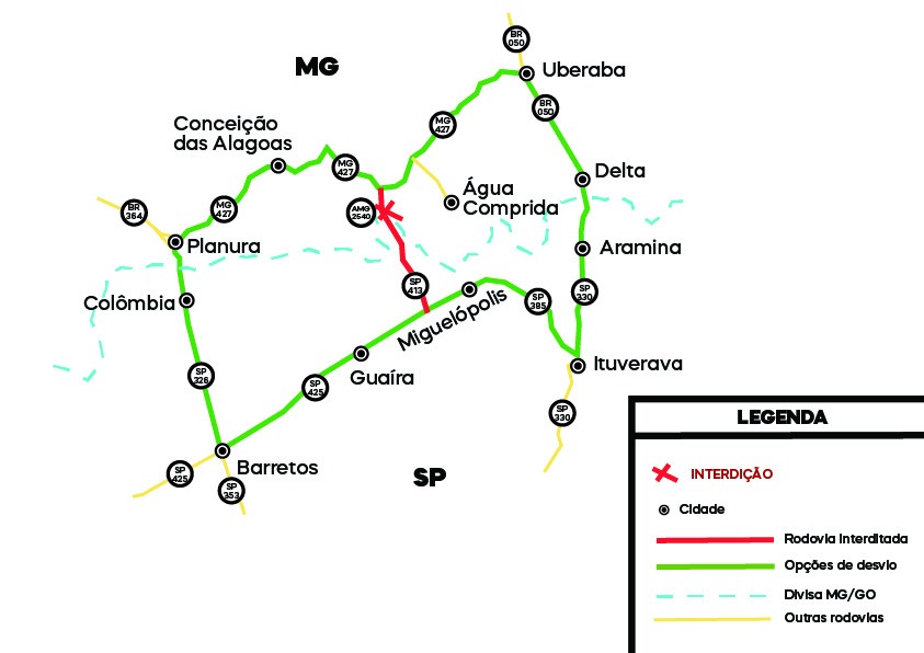 Como alternativa, o DER mineiro sugere aos motoristas que se deslocam para São Paulo outros dois acessos: