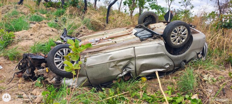 Dois moradores de Douradoquara morreram na tarde deste sábado (18) após um capotamento na MG-190, no km 14, entre Monte Carmelo e Abadia dos Dourados. O acidente ocorreu por volta das 16h20. Segundo a Polícia Militar Rodoviária, o veículo, um VW Voyage com placas de Uberlândia, seguia em alta velocidade quando saiu da pista, capotou e parou com as rodas para cima na área de domínio do DER. As vítimas são o motorista, de 72 anos, e o passageiro, de 54. A identidade das vítimas não foi divulgada pela polícia.Equipes do SAMU chegaram ao local, mas a médica apenas pôde constatar os óbitos. Os corpos ficaram encarcerados nas ferragens. A retirada foi dificultada pela chuva que atingiu a região no final da tarde e durante a noite. A perícia técnica da Polícia Civil e o Corpo de Bombeiros foram acionados para os trabalhos de praxe. Os corpos foram encaminhados ao Instituto Médico Legal (IML) de Patrocínio.