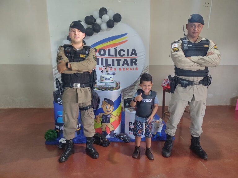 Um gesto simples, mas cheio de significado marcou a tarde desta segunda-feira (6), em Monte Carmelo. O pequeno Hugo José, de apenas 4 anos, ganhou um presente especial de aniversário: a presença de policiais militares que ele tanto admira. Atendendo ao convite da família, os militares Sargento Odair e Soldado Vieira participaram da comemoração, levando alegria e emoção ao aniversariante. O garoto ganhou uma decoração semelhante ao estilo visual da corporação e demonstrou entusiasmo ao receber os cumprimentos e tirar fotos com os policiais. A ação, além de alegrar o menino e sua família, reforçou o vínculo de proximidade e confiança entre a Polícia Militar e a comunidade carmelitana, mostrando o lado humano e afetivo por trás do trabalho diário de proteção e segurança. O gesto foi ainda mais simbólico por ocorrer no dia em que se comemora os 143 anos de Monte Carmelo.