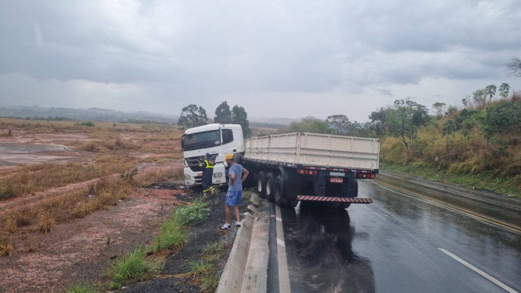 Em outro trecho, um veículo de carga saiu da pista e acabou obstruindo uma das faixas.