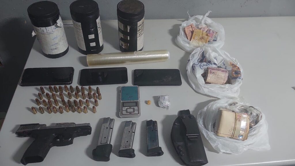 A operação, realizada a partir de mandados de busca e apreensão em endereços investigados por envolvimento com crimes relacionados à venda de entorpecentes, localizou drogas já fracionadas e prontas para comercialização, além de uma pistola 9mm da marca Taurus, três carregadores e 40 munições. A arma havia sido furtada em 2020.