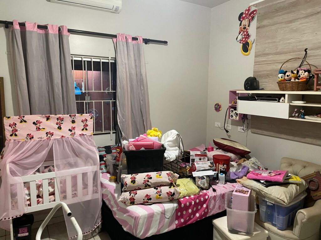 Imagens divulgadas pela corporação revelam que o cômodo tinha um enxoval predominantemente rosa, com berço, brinquedos e itens de uso infantil.