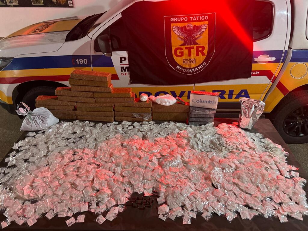 Uma operação de fiscalização na BR-146, em Patos de Minas, resultou na apreensão de uma grande quantidade de drogas e munições na tarde de quarta-feira (3). Um passageiro de 30 anos foi preso em flagrante depois que policiais encontraram cocaína, pasta base, maconha e munições de calibre restrito dentro de suas bagagens.