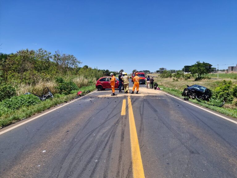 Um grave acidente envolvendo quatro veículos deixou uma pessoa morta e duas feridas na manhã desta quinta-feira (23), na BR-050, no trecho que passo pelo Anel Viário de Uberlândia. De acordo com informações da Polícia Militar Rodoviária, o acidente envolveu um Hyundai HB20, um GM Corsa Classic e um Citroën C3. Uma testemunha relatou ainda que um quarto veículo teria se envolvido na batida, mas deixou o local antes da chegada das autoridades e não foi identificado. Com o impacto, o condutor do Corsa Classic, de 31 anos, morreu no local. A condutora do HB20 foi socorrida e levada para o Hospital de Clínicas da Universidade Federal de Uberlândia, enquanto o motorista do Citroën C3 foi encaminhado à UAI Planalto. A perícia técnica foi acionada e realizou os trabalhos de praxe. A Polícia Militar Rodoviária informou que ainda não é possível determinar qual veículo invadiu a contramão e provocou a colisão. A pista ficou interditada nos dois sentidos por cerca de duas horas e foi totalmente liberada por volta das 12h40.