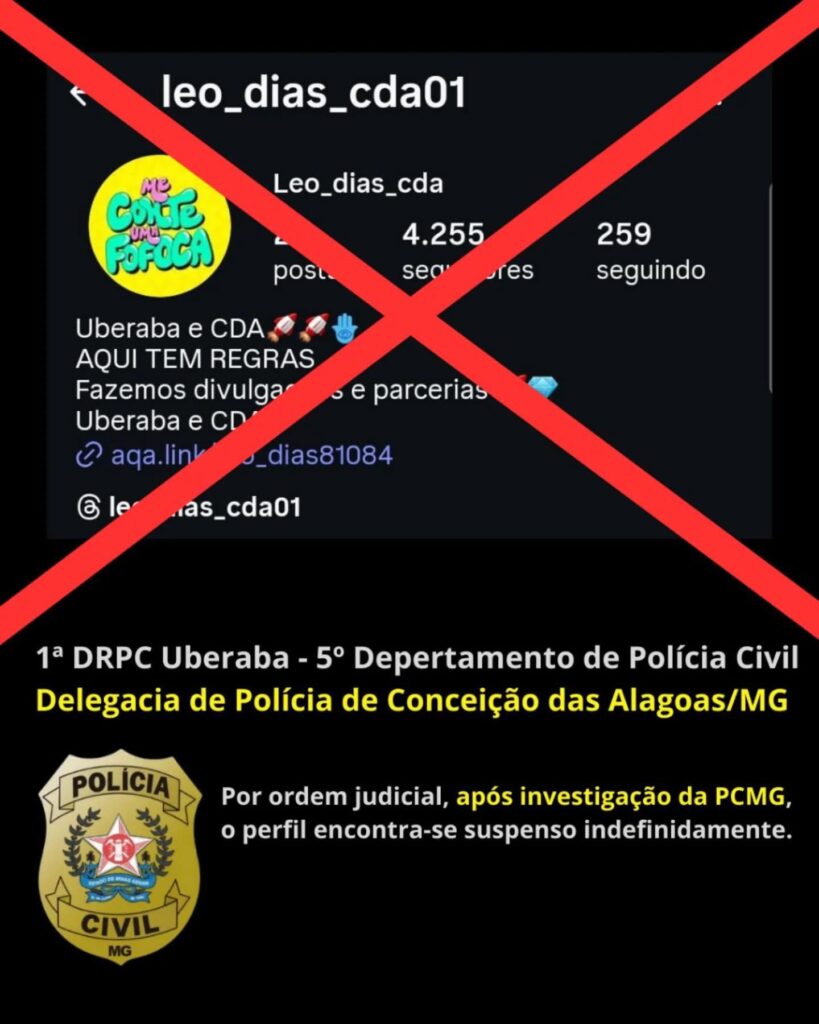 A Polícia Civil prendeu preventivamente uma jovem de 21 anos acusada de usar uma página de fofocas no Instagram para extorquir moradores de Uberaba e Conceição das Alagoas, no Triângulo Mineiro. A ação faz parte da Operação Maledicta Bocca, deflagrada após 50 dias de investigação. Segundo a polícia, a investigada publicava conteúdos difamatórios na página “Leo Dias CDA” e exigia R$ 300 para retirar os posts ofensivos. O delegado Bruno Vinícius, que comandou as investigações, afirmou que a prática do crime se tornou a principal fonte de renda da jovem. “A internet não é e nunca será uma terra sem lei. A Polícia Civil trabalhou incansavelmente na apuração, analisando mais de 12 mil páginas de conteúdo. A investigação continua e ainda há um grande volume de dados para ser periciado”, afirmou o delegado. Justiça determina bloqueio de contas e suspensão da página A 1ª Vara Criminal de Conceição das Alagoas decretou a prisão preventiva, além do bloqueio das contas bancárias usadas para receber o dinheiro das extorsões. A página investigada no Instagram também foi suspensa por tempo indeterminado. Polícia orienta vítimas a denunciar A polícia reforça que vítimas do esquema devem procurar a delegacia e registrar ocorrência. “É fundamental que cada vítima formalize a denúncia para que a responsabilização criminal seja completa”, acrescentou o delegado Bruno Vinícius. A jovem deve responder por extorsão, difamação e injúria. Caso seja condenada por todos os crimes, a pena pode ultrapassar 10 anos de prisão.