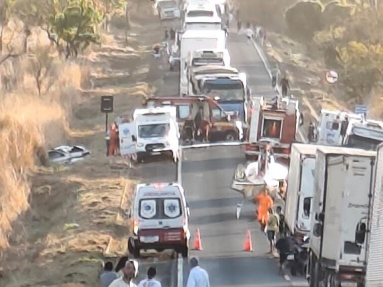 Um grave acidente envolvendo uma caminhonete e um caminhão deixou um motorista em estado crítico na tarde deste domingo (31), na BR-262, em Sacramento (MG). A batida ocorreu por volta das 16h, no km 742 da rodovia, e mobilizou equipes do Corpo de Bombeiros, da Polícia Rodoviária Federal (PRF) e da concessionária Way 262. Segundo a PRF, o condutor de uma Fiat Strada Adventure tentava ultrapassar outro veículo quando colidiu de frente contra um caminhão Volvo FH/460, que seguia no sentido oposto. O impacto foi tão forte que o motorista da caminhonete ficou preso às ferragens. O resgate exigiu a atuação conjunta do Corpo de Bombeiros e da equipe da concessionária. Após ser retirado do veículo, o motorista, em estado grave, foi levado por uma aeronave dos Bombeiros até o Hospital Escola de Uberaba, referência para casos de alta complexidade. No caminhão, que estava sem reboque no momento da colisão, um passageiro sofreu apenas escoriações leves e foi encaminhado ao hospital de Araxá. A rodovia ficou totalmente interditada por mais de duas horas, sendo liberada parcialmente por volta das 18h20. As causas do acidente serão esclarecidas por laudo pericial.