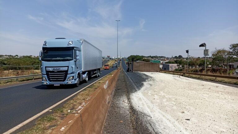 Um reboque de carreta, que estava carregado com gesso, tombou na manhã desta terça-feira (16) no km 176 da BR-050, em Uberaba, sentido Uberlândia. O acidente espalhou parte da carga sobre a pista e provocou um congestionamento de cerca de 3 km, segundo a Polícia Rodoviária Federal (PRF). Ainda não há informações sobre as causas do tombamento. A PRF informou que o trânsito está sendo desviado para o perímetro urbano de Uberaba. A concessionária responsável pela rodovia foi acionada para a retirada do reboque e a limpeza da pista. Até a liberação, a recomendação é que motoristas evitem o trecho ou redobrem a atenção.