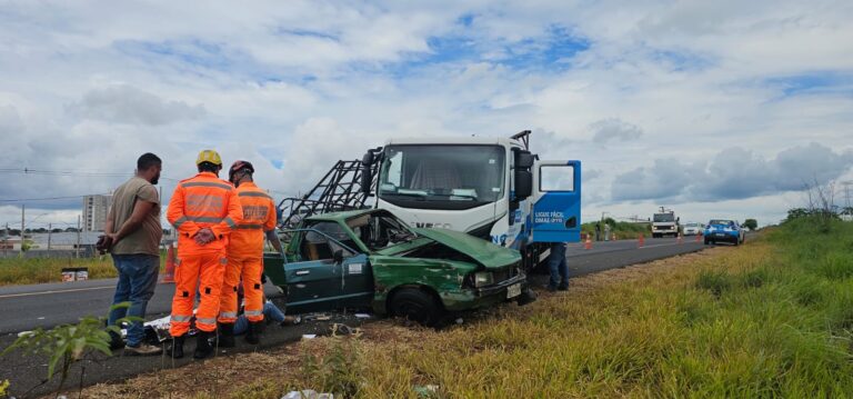 Um acidente de trânsito registrado no anel viário Sul de Uberlândia resultou na morte de um homem de 63 anos, na BR-050, na altura do km 23, na tarde desta quinta-feira (8). A colisão envolveu um caminhão pertencente ao Departamento Municipal de Água e Esgoto (DMAE) e um veículo utilitário, modelo Ford Pampa. Equipes de resgate que já se deslocavam pela região chegaram rapidamente ao local e iniciaram o atendimento à vítima, com manobras de ressuscitação cardiopulmonar (RCP), até a chegada da Unidade de Suporte Avançado (USA). Apesar do atendimento integrado entre as equipes de emergência, o óbito foi constatado ainda no local. De acordo com o relato do condutor do caminhão, ele seguia pelo anel viário, no sentido bairro Shopping Park, quando, ao passar próximo a uma entrada de estrada de terra, foi surpreendido pela Ford Pampa, que teria acessado repentinamente a pista com a intenção de realizar um retorno. Com o impacto, o automóvel foi arrastado para o lado oposto da via. Em decorrência da colisão, a vítima foi ejetada do veículo e permaneceu caída ao solo. A área foi sinalizada e isolada, ficando sob responsabilidade da Polícia Militar Rodoviária e da perícia técnica da Polícia Civil, que compareceram para os procedimentos legais e apuração das circunstâncias do acidente.