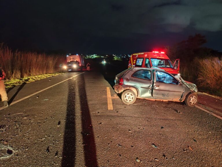 Um grave acidente de trânsito foi registrado na noite desta sexta-feira (11), por volta das 18h12, na BR-050, anel viário sul de Uberlândia. A colisão frontal envolveu dois veículos: um Corsa de cor verde e um Chevrolet Ônix branco, deixando ambos os condutores feridos. De acordo com informações da Polícia Militar Rodoviária, o acidente ocorreu após o Corsa, que trafegava no sentido decrescente da rodovia, invadir a pista contrária e colidir de frente com o Onix, que seguia no sentido contrário. Uma testemunha que trafegava logo atrás do Onix confirmou a versão. O condutor do Corsa, um homem de 28 anos, ficou preso às ferragens e precisou ser resgatado pelo Corpo de Bombeiros. Ele apresentava escoriações pelo corpo, ferimento em uma das pernas e confusão mental, pronunciando palavras desconexas. Após o resgate, foi socorrido e encaminhado ao Pronto-Socorro da Universidade Federal de Uberlândia (UFU). Já o motorista do Onix, de 35 anos, teve escoriações e foi levado à UAI Pampulha para atendimento médico.