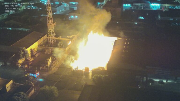 Um incêndio de grandes proporções atingiu uma madeireira na Rua Santa Catarina, no bairro Brasil, no início da madrugada desta sexta-feira (3). O fogo, que estava sem controle, mobilizou o Corpo de Bombeiros Militar por mais de cinco horas. De acordo com a tenente-coronel Ana Paula, comandante do 5º Batalhão de Bombeiros Militar (BBM), o chamado para a ocorrência foi recebido por volta das 2h30. Devido à natureza do material combustível, as chamas se alastraram rapidamente, chamando a atenção da vizinhança. O incêndio só foi controlado por volta das 7h. Até a publicação desta reportagem, equipes do Corpo de Bombeiros seguiam no local realizando o rescaldo. A operação de combate precisou do apoio do Departamento Municipal de Água e Esgoto (DMAE), que forneceu caminhões-pipa para auxiliar no abastecimento das equipes. Não há informações sobre o que possa ter iniciado o fogo. O caso será investigado.