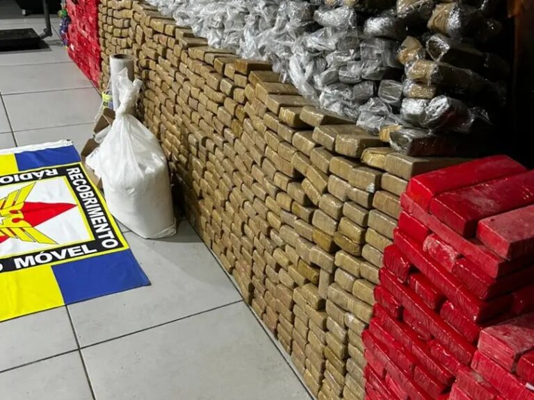 Um homem de 48 anos foi preso na noite de segunda-feira (24), em Uberlândia, depois de chamar a Polícia Militar para pedir socorro, após ser baleado na porta de casa, no bairro Alto Umuarama. Na residência onde o homem foi baleado, os militares encontraram cerca de uma tonelada de maconha e material ligado ao tráfico de drogas. De acordo com a PM, o homem ligou para o número de emergência dizendo ter sido vítima de disparo de arma de fogo. Equipes da PM foram ao endereço e o encontraram com um ferimento na perna. Durante o atendimento, ele alegou que teria sofrido uma tentativa de assalto. Contudo, durante a verificação do imóvel, os policiais localizaram 1.007 barras de maconha, que totalizam aproximadamente uma tonelada do entorpecente. Também foram localizados uma balança industrial, quatro balanças de precisão, um caderno com anotações da contabilidade do tráfico, pacotes de ácido bórico e grande quantidade de material para embalagem de drogas. Em consulta ao sistema de informações, a PM foi informada que o homem tem diversas passagens policiais por tráfico de drogas, ameaça, porte ilegal de arma de fogo, violência doméstica e latrocínio, além de dois mandados de prisão em aberto. Após receber atendimento por causa do tiro na perna, ele foi preso e encaminhado à Delegacia de Polícia Civil de Uberlândia, junto com toda a droga e os materiais apreendidos.